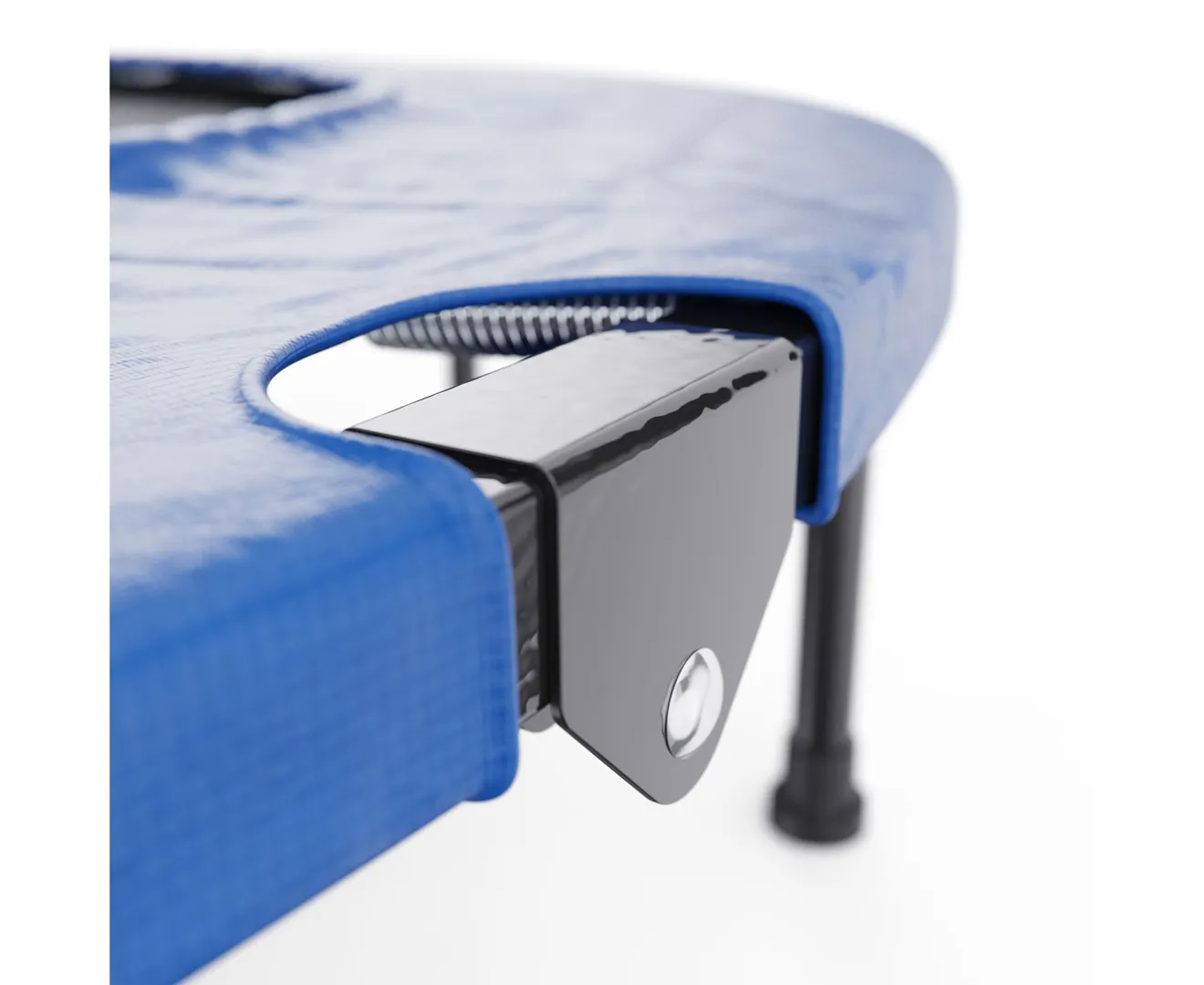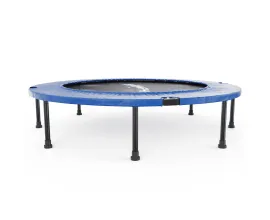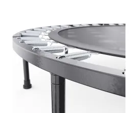 Защитный мат из ткани Oxford закрывает пружины по кругу, чтобы нога случайно не провалилась. Высота батута 27 см — низкий, вписывается в любую комнату, не перегружает пространство. Прыжковая поверхность почти метр (93,5 см), ребёнку хватает развернуться.