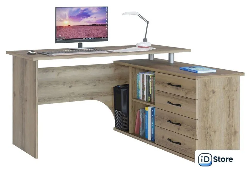 стол для работы, угловая форма, 1400x1270 мм, высота 750 мм, материал: ЛДСП (столешница), ЛДСП (опоры). Доставим по Минску в день заказа, при оформлении заявки до 14.00. Официальная гарантия.