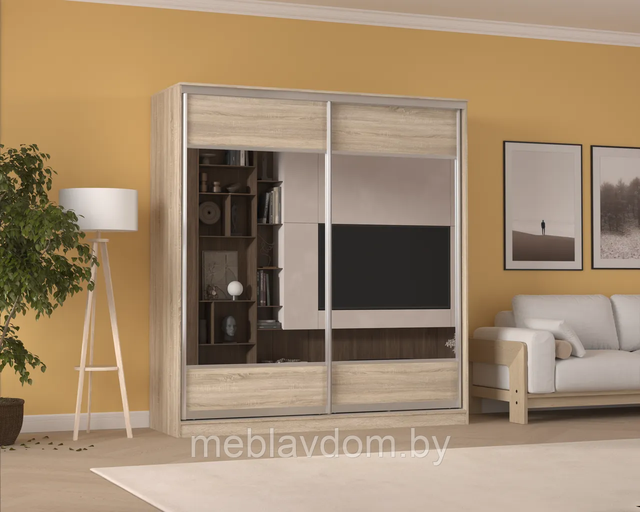 Современный шкаф-купе с двумя дверями.